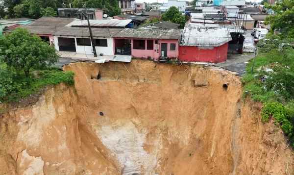 Moradores abandonam casas após cratera ceder em Manaus